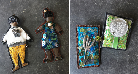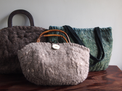 岡崎朋美さんのアクセサリーはレザーの上に ビーズ、ワイヤー、金属などをコラージュしたブローチが並びます。 大野圭子さんのバッグは羊毛、麻などの天然素材を使った、 気持ちがやさしく、温かくなる作品です。 作家在廊日:11/9